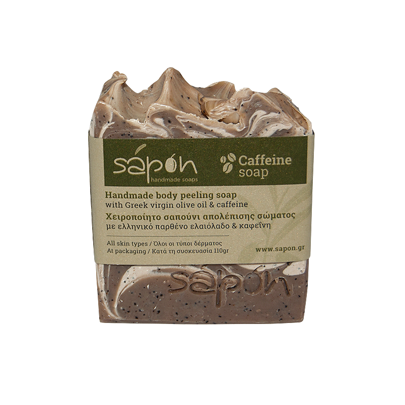 Handmade body peeling soap with Greek virgin olive oil & caffeine. Amaretto scented.