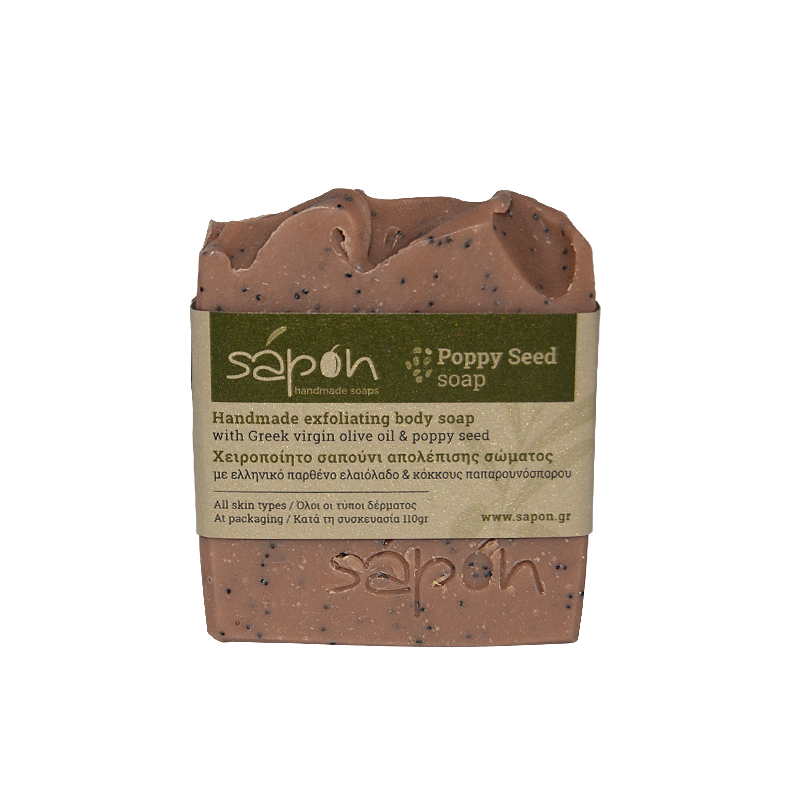 Handmade exfoliating body soap with Greek virgin olive oil & poppy seed. Jasmine scented.