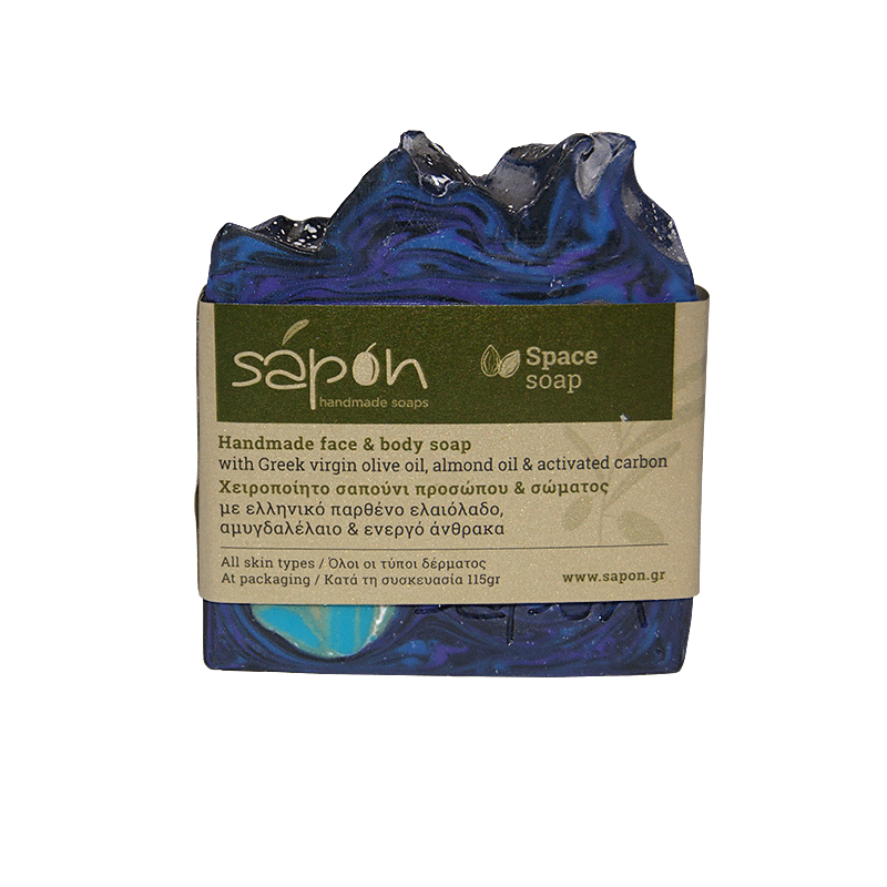 Handmade face & body soap with Greek virgin olive oil, almond oil & activated carbon.